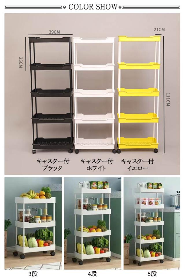 | サイズについての説明 | 3段:長さ39cm/幅21.5cm/高60cm 4段:長さ39cm/幅21.5cm/高85.5cm 5段:長さ39cm/幅21.5cm/高111cm ※実寸はメジャー採寸の為、若干の誤差が生じる場合があります。 |