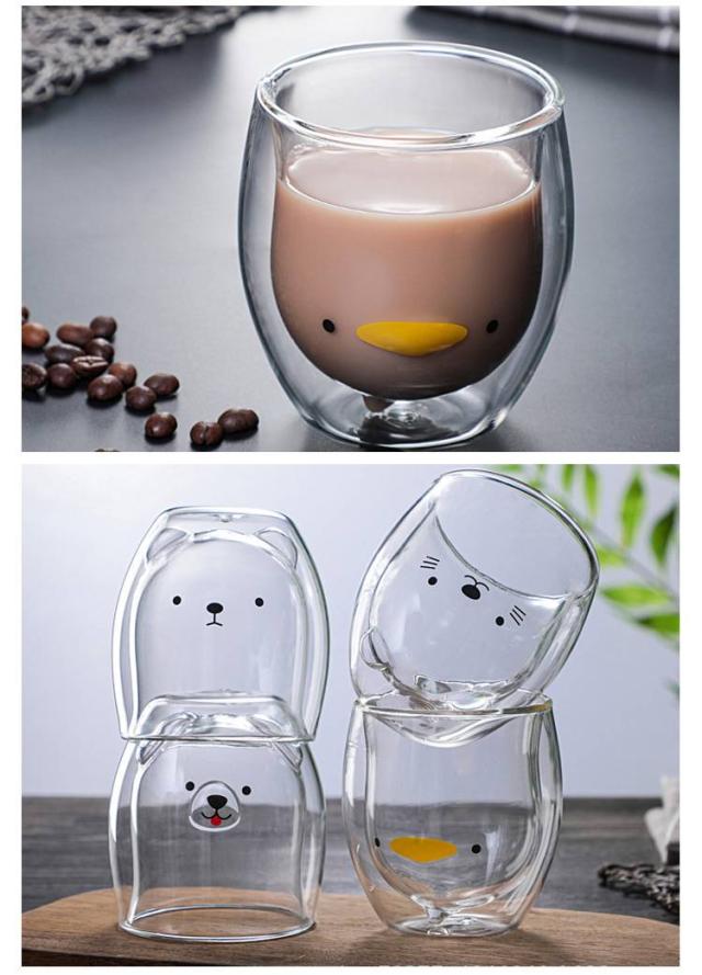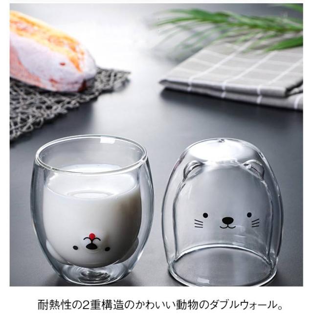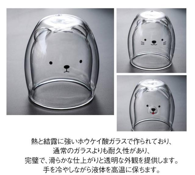 ダブルウォールグラス クマ グラス クマ ネコ 250ml 耐熱ガラス カップ アヒル 二重 コップ 二重壁 断熱ガラス 2個セット グラス 猫 マグカップ コーヒーカップ ティーカップ ワイングラス 断熱 動物 おしゃれ 透明 北欧 食器 お祝い 誕生日 プレゼント