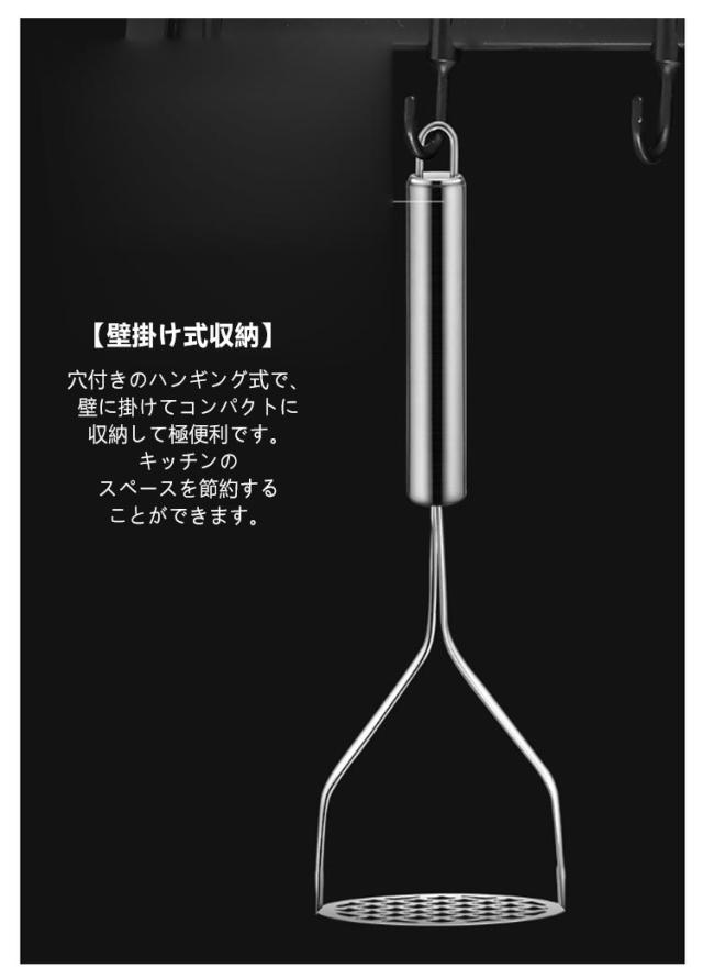 | 【多機能マッシャー】:ジャガイモだけでなく、果物、ニンジン、大豆、芋なども適用されます。お手作りのサラダ、離乳食にとても役立ち、キッチンの良いヘルパーです。 【優れた材質】:食品レベルのステンレス鋼で作られて、無毒無臭、しっかりした作りで防錆性と耐久性があり、食器洗浄機に対応します。お手入れも簡単で、もし汚れが付いたら、湿た布で少し拭いたらOK! 【人間工学に基づいたデザイン】:頑丈で滑り止めハンドルは、人間工学に適合していて、錆びにくい。力の入れやすい形状で、ハンドルも持ちやすいですから、あなたの手を傷つけることができません。 【壁掛け式収納】:穴付きのハンギング式で、壁に掛けてコンパクトに収納して極便利です。キッチンのスペースを節約することができます。 | |