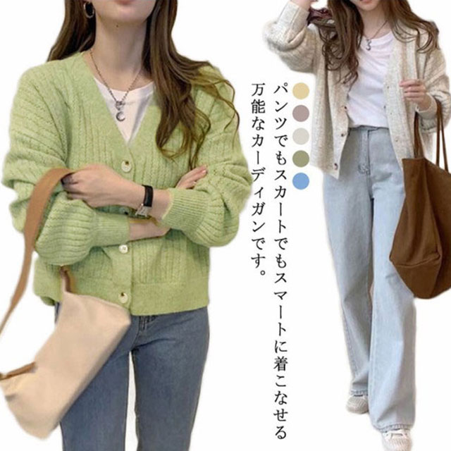 ニットカーディガン レディース カーディガン ショート丈 ニットセーター コーディガン トップス ニットアウター カーデ 羽織 長袖 前開き 春 秋オフィス 通学 事務 お洒落 シンプル