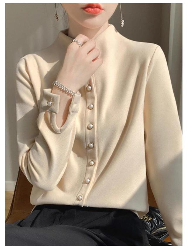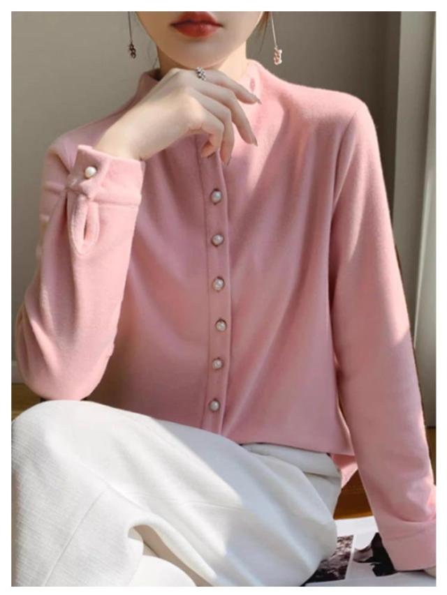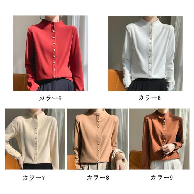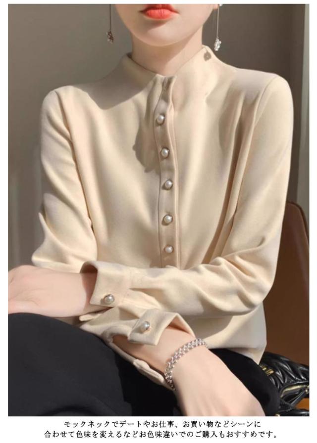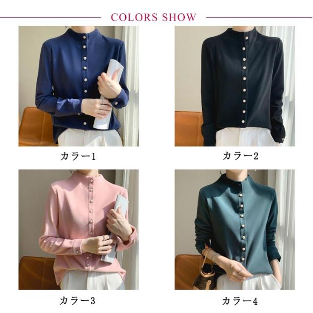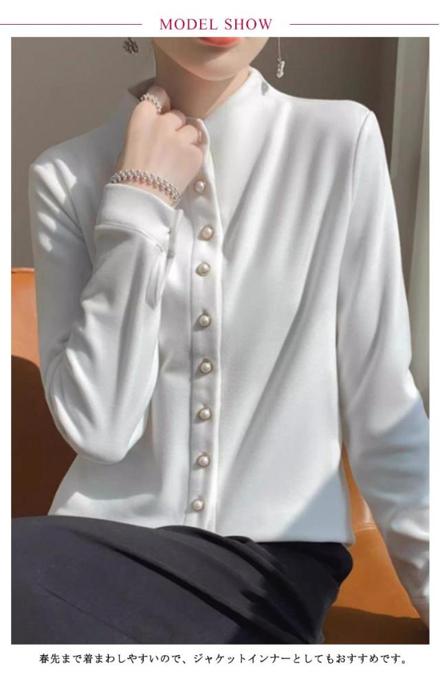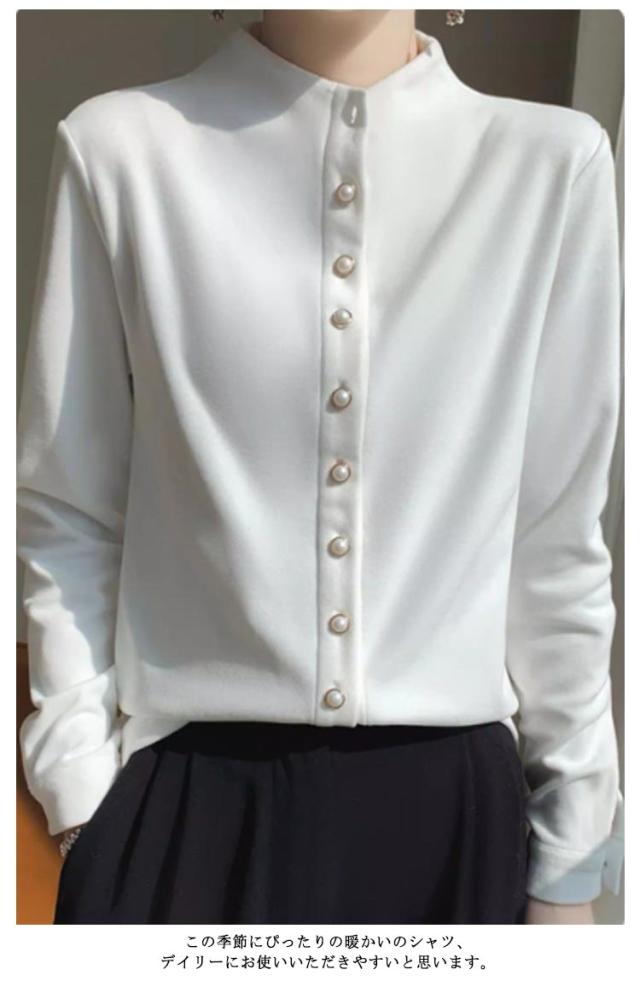 スリム 秋冬 秋 レディース モックネック 長袖シャツ ブラウス トップス モックネック シャツ M フォーマル 長袖 暖かい オフィス 冬 きれいめ S OL L XL 2XL