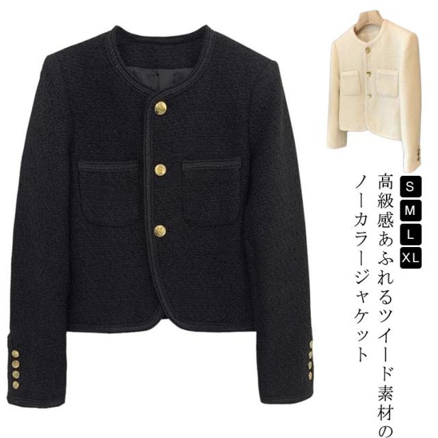 ツイードジャケット 母親 長袖 アウター 秋 レディース 韓国 母 ノーカラー 春服 卒業式 ツイードジャケット スーツ 入学式 入園式 卒園式 フォーマル ママ ジャケット 結婚式 きれいめ カジュアル オフィス お宮参り 七五三 パーティー