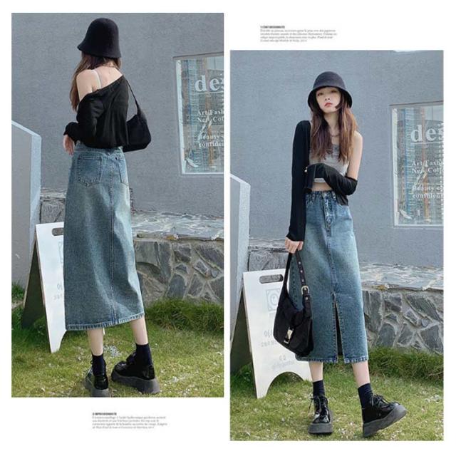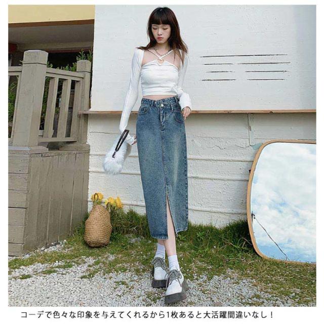 送料無料 ロング デニムスカート スカート レディース デニム マキシスカート フレアスカート ロングスカート マキシ タイトスカート タイト ミモレ丈 膝丈 ひざ丈 スリット カジュアル 可愛い かわいい きれいめ 大人 コーデ おしゃれ 春 夏 秋 冬