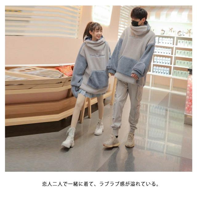 パーカー レディース メンズ ボア プルオーバー フリース プルパーカー モコモコ トップス 長袖 フード付き 体型カバー 厚手 春 秋 冬 カップル 夫婦ペア ペアルック もこもこアウター 暖かい 保温 防寒 ハロウィン仮装 コスチューム