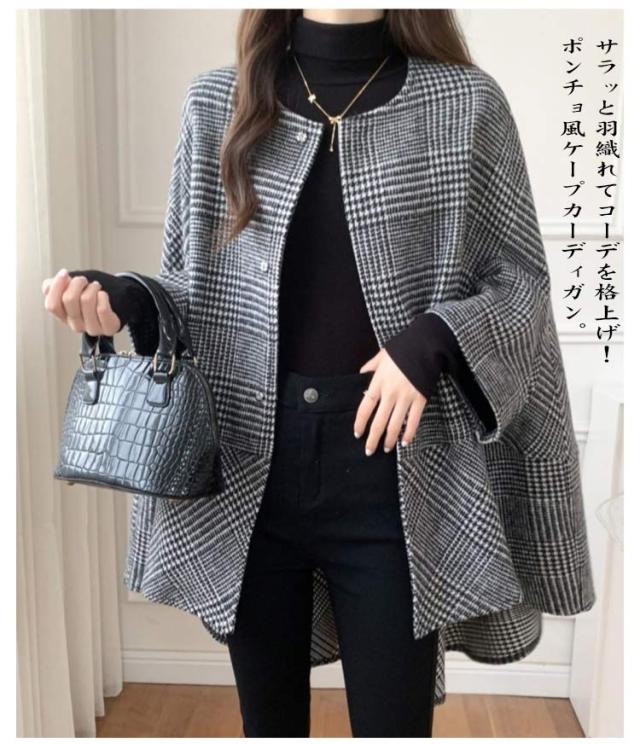 ショートコート 羽織り 気質 レディース 秋 マント トレンチコート ポンチョ コート ジレ チェスターコート ケープ チェック柄 ジャケット こなれ感 アウター 大きいサイズ ゆったり ショート丈 ポンチョコート 前開き 冬 ゆったり コート 大人 20代 30代 40代