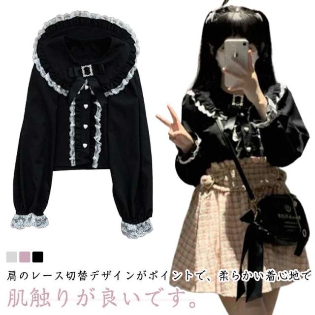 レースブラウス レディース 冬 ハートビジューリボン ブラウス 長袖 量産型 オフショル 参戦服 ロリータ ブラック ホワイト 地雷系 トップス ピンク 秋 おしゃれ レース ハート 学院風 病みかわいい きれいめ お姫様 ゴスロリ