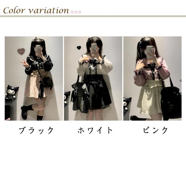 | 肩のレース切替デザインがポイントで、柔らかい着心地で肌触りが良いです。 フロントにフリルがたっぷり付き!取り外し可能リボンも付いていて、袖の部分も可愛く、華やかさがUP! ジャケットやジレなどのトップス、スカートやジーンズなどのボトムス、吊りスカートなどと合わせることで着回し力は抜群です。 地雷系、量産型、ロリータ系、ガーリー系、森ガール、姫系などのファッションが好きな方にぴったりです。 文化祭、学園祭、演出、撮影など様々なシーンで活躍! | |