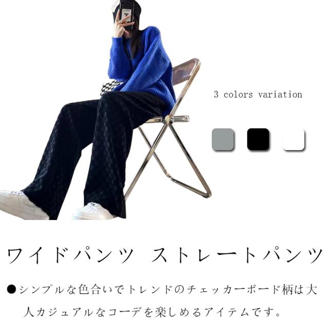 ワイドパンツ ストレートパンツ レディース チェッカーボード柄パンツ ロングパンツ ハイウエスト タータンチェック レトロ ボトムス ズボン 大きいサイズ 着回し ファッショ 春 秋 冬