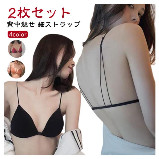 細ストラップ 見せブラ ノンワイヤー 開き ブラジャー 肩紐細め 春 背中見せ ブラトップ 背中あき バックオープンブラ 背中 見せブラ ナローストラップ 黒 見せるインナー バックオープン 【2枚セット】ブラ レディース 夏 秋 下着 インナー