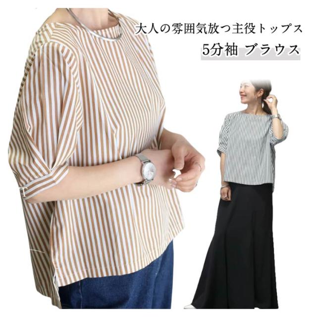 レディース ドルマンスリーブ ブラウス ドルマン風プルオーバーカットソー ドルマン 5分袖 プルオーバー Tシャツ Tシャツ ストライプ カットソー レディース ストライプシャツ 夏 トップス ゆったり tシャツ ドルマントップス 春 夏 秋