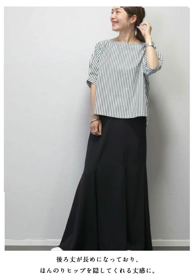| 『大人の雰囲気放つ主役トップス。』 こなれた印象とラフなゆる感が存在感を決定づけるドルマンカットソー。 細めピッチのストライプ柄の計算されたバランスが、お洒落な魅力を一層高める。 前後差のあるスリット入りのヘムラインは 後ろ丈が長めになっており、 ほんのりヒップを隠してくれる丈感に。 長めの裾ラインは角度に合わせて視線を惹きつけます。 | |