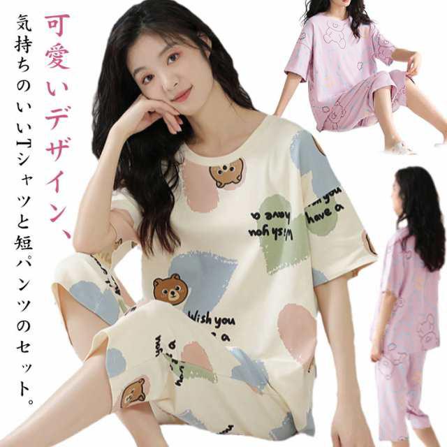 上下セット 夏用パジャマ レディース 部屋着 秋 上下セット 大人用 パジャマ 春 可愛いパジャマ 母の日 襟なし 夏 ルームウェア L 夏パジャマ 半袖パジャマ かわいい 綿 XL 大人用 部屋着 丸首 大きいサイズ パジャマ