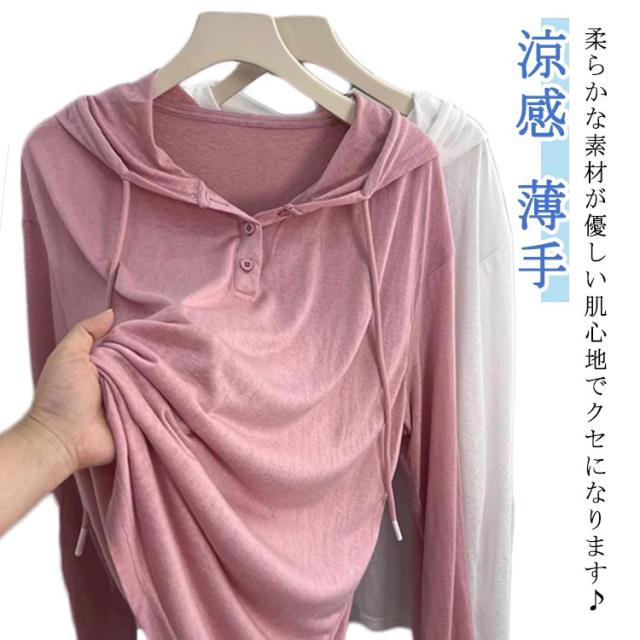 スエット 夏 薄手 夏服 涼感 送料無料 カットソー パーカー フード付き ロンT 長袖tシャツ プルオーバー ロングtシャツ ロンT 春 ルームウエア 長袖トップス レディース ゆったり インナー アウター 送料無料 夏 秋 春物 秋服 大きいサイズ