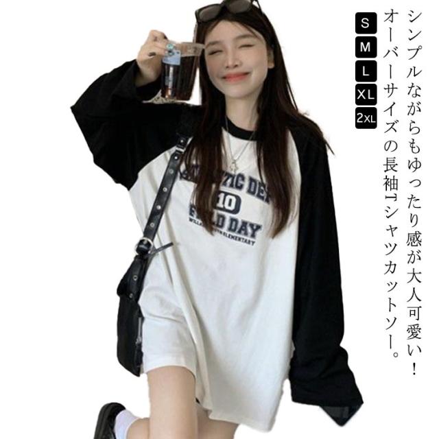 長袖 Tシャツ レディース カットソー ビッグシルエット トップス 長袖tシャツ カジュアル ロゴ おしゃれ かわいい オーバーサイズ 大きいサイズ ロンT 丸首 英字 プリント ドルマンスリーブ 春 夏 秋 ロゴ ストリート系