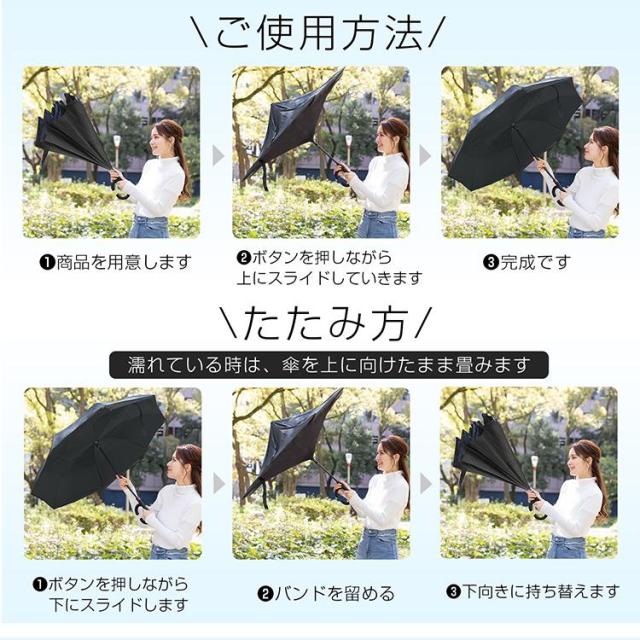 日傘 完全遮光 UVカット 晴雨兼用 長傘 逆さ傘 ボタン式 雨傘 大きめ おしゃれ 逆折り 丈夫 耐風 紫外線対策 熱中症対策グッズ スポーツ レディース メンズ
