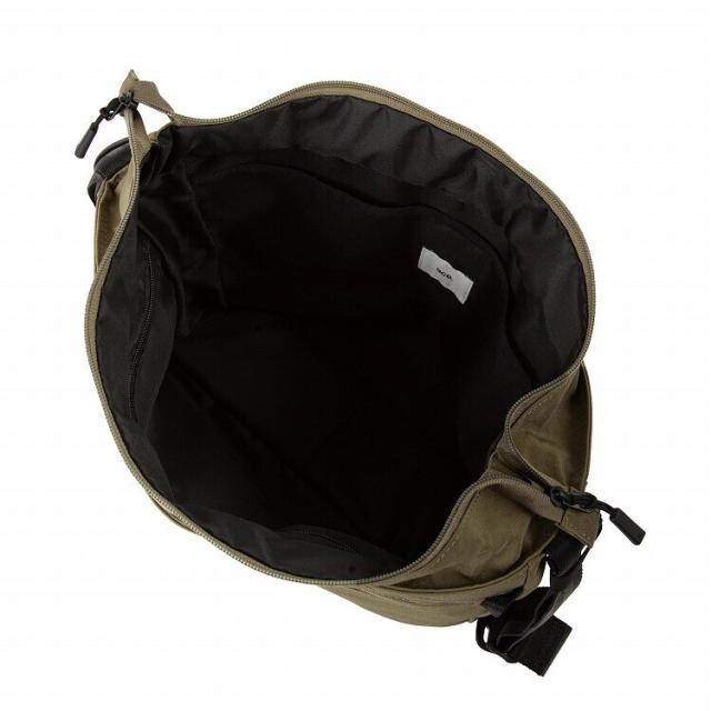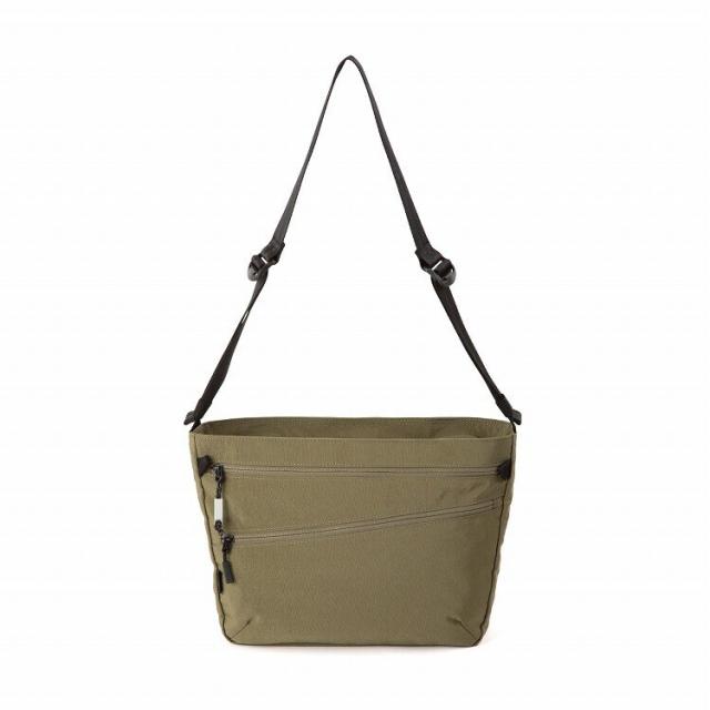ダブルフロントポケットが特徴のA4サイズショルダーバッグ。