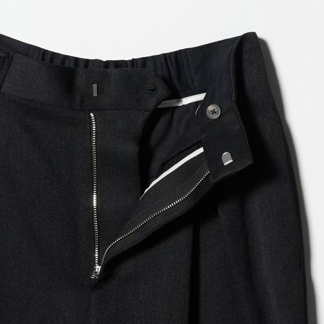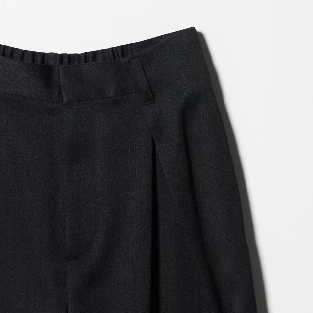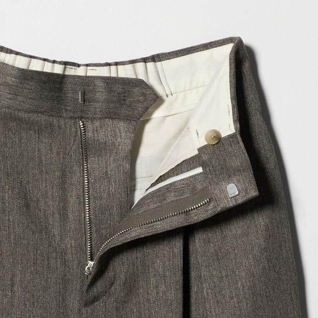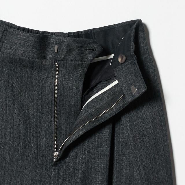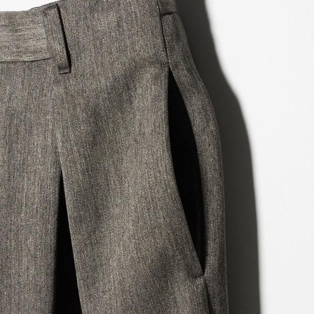 ウールのツイードのような奥行きのある素材が季節感を薫らせるワイドパンツ。