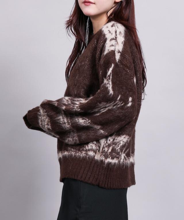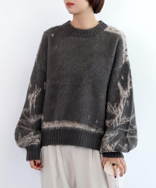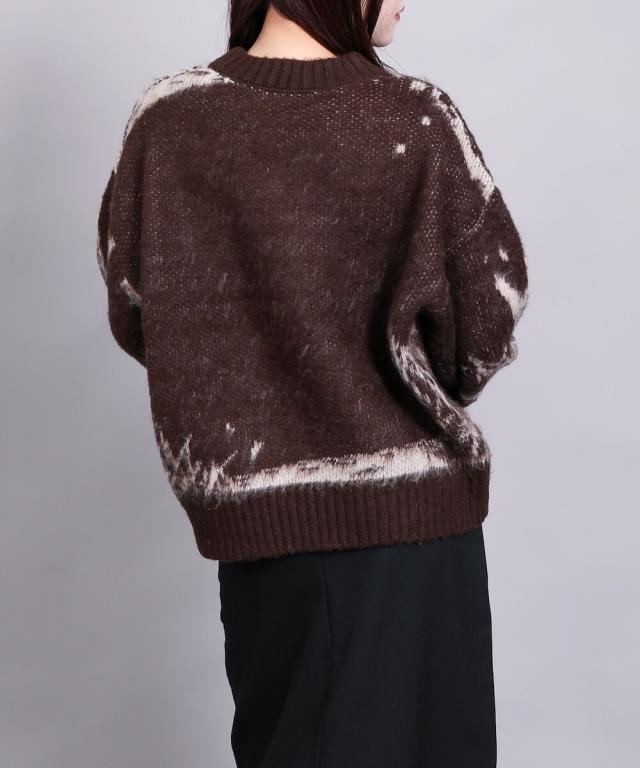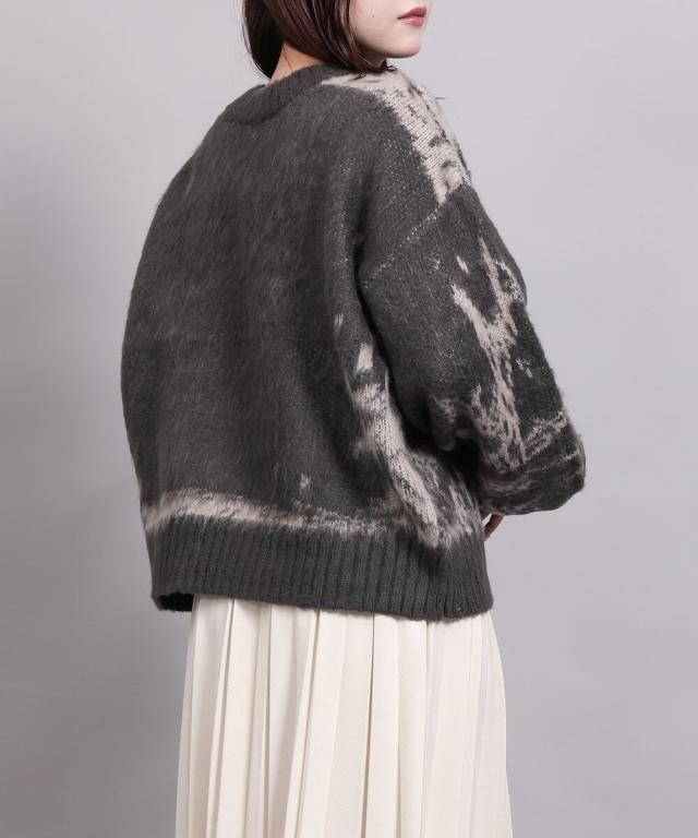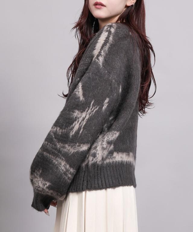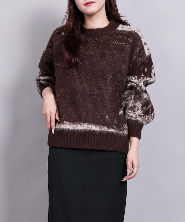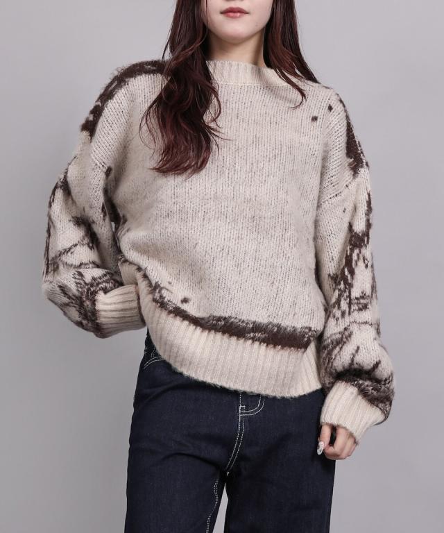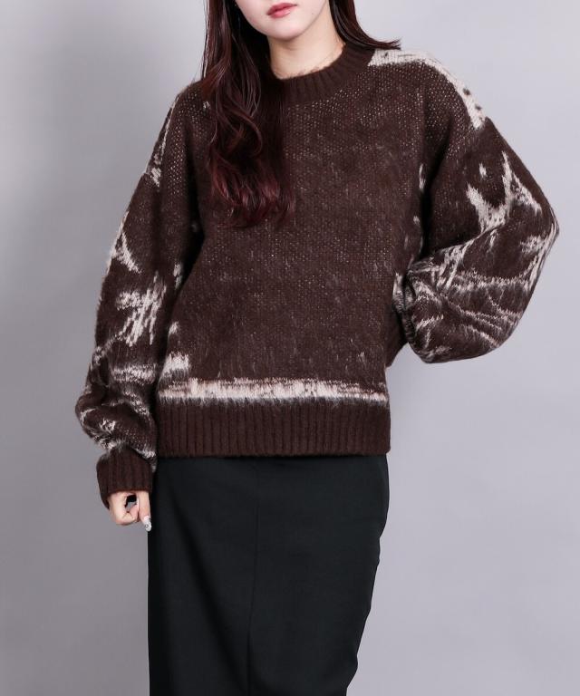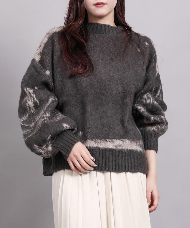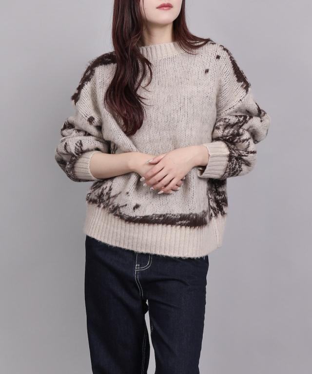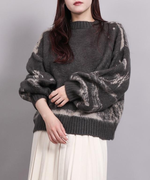 大胆なニュアンス柄が存在感のあるニットトップス。