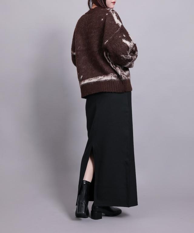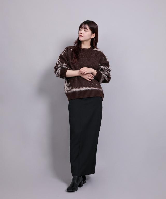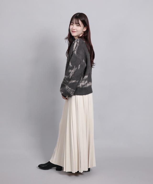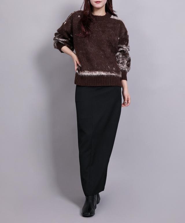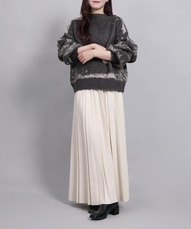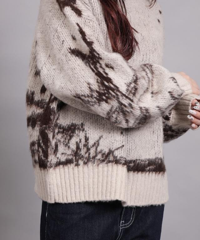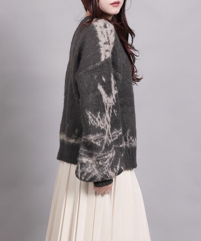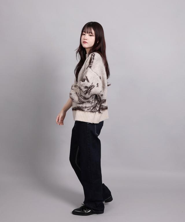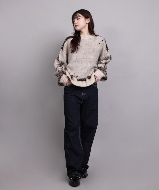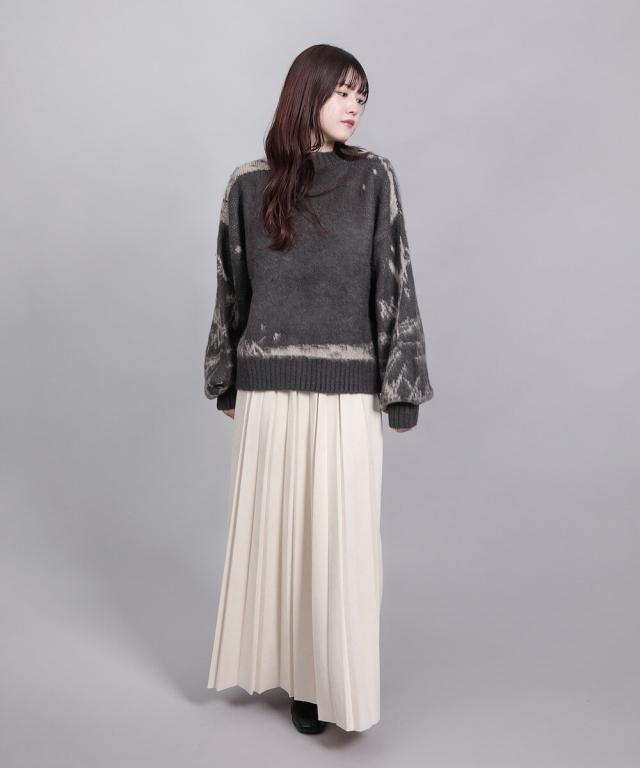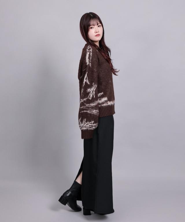 大胆なニュアンス柄が存在感のあるニットトップス。