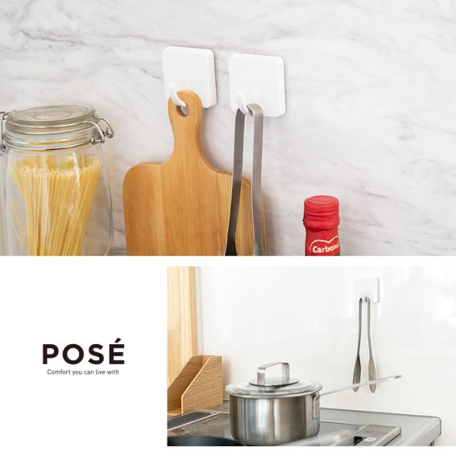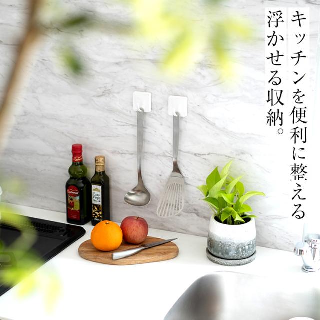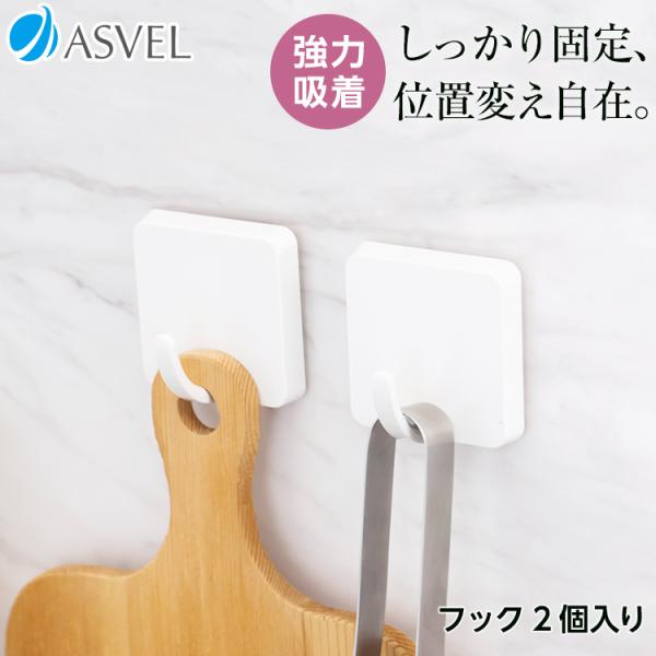 キッチンツールフック 収納 浮かせる収納 おしゃれ フック 2個入り 吸着シート アスベル ポゼ キッチン収納 ホワイト キッチン