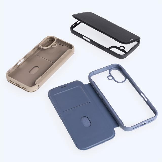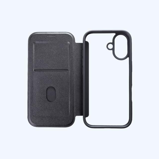 透明な背面パネルで端末のデザインをそのまま楽しめるフリップケース。