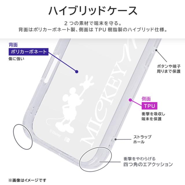 シンプルで可愛らしいミッキーのデザインが楽しめる、透明感のあるハイブリッドケース。