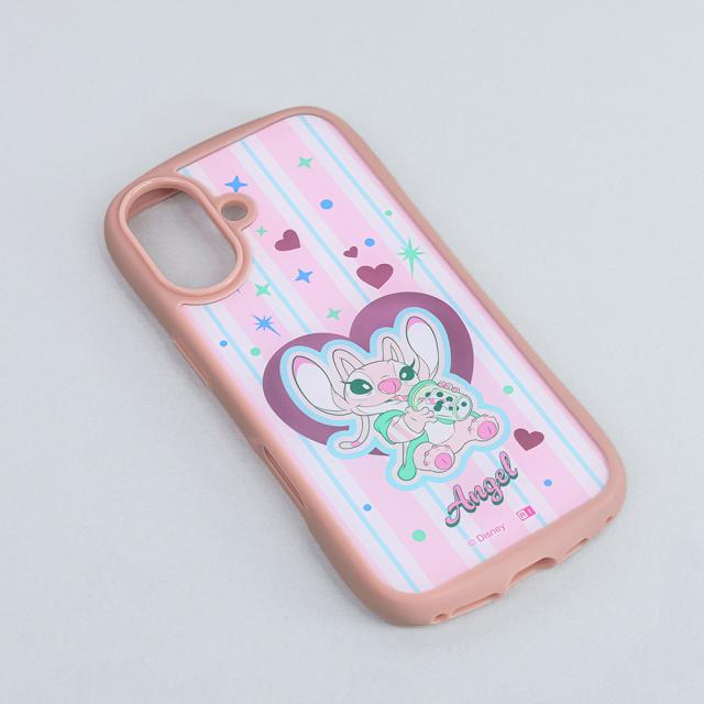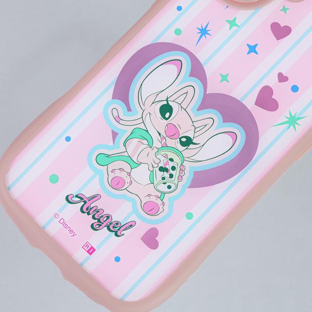 スティッチの大好きなエンジェルがタピオカを飲んでいる、キュートでファッショナブルなデザインと、衝撃に強い安心感を兼ね備えたハイブリッドケース。