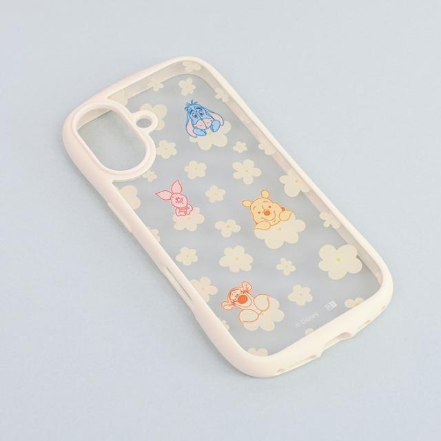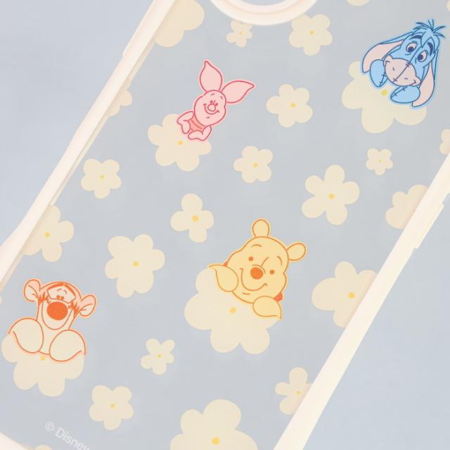 プーと仲間たちが花に乗ってこちらを覗いているような、可愛らしいデザインと、衝撃に強い安心感を兼ね備えたハイブリッドケース。