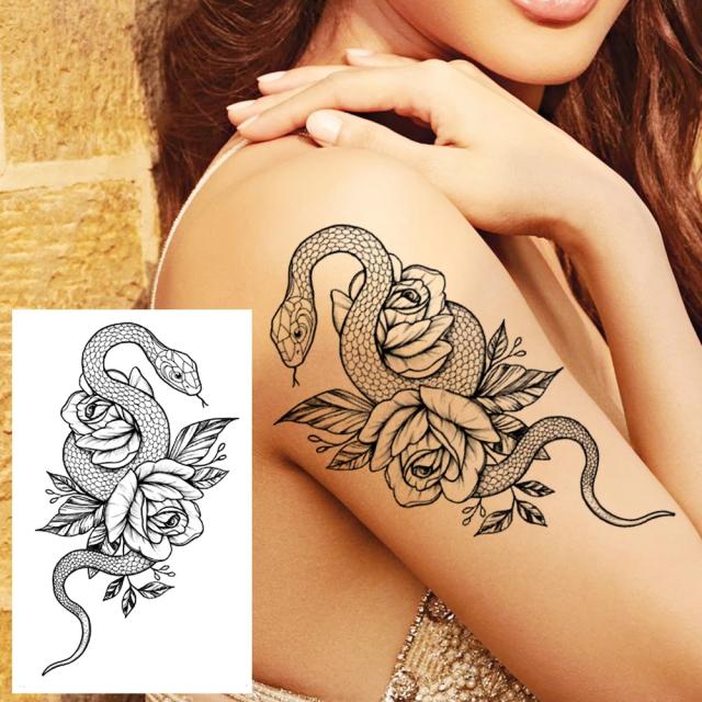 大きめフェイクタトゥーステッカーは、迫力満点のスネークとフラワーのデザインが特徴です。