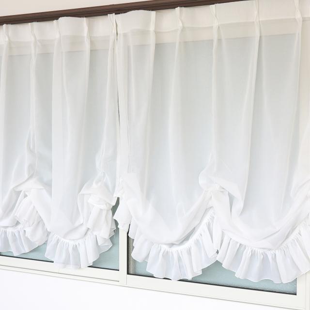 【お姫様カーテン】日本製 バルーンカーテン フリル付ボイルレース 出窓カーテン 高級ボイル【サブレ/ノーブル/シトリン/クォーツ】エレガント スタイルカーテン 姫系 フリル 無地 かわいい シフォンレース ヨーロピアンスタイル おしゃれ 幅100cm 幅150cm 幅200cm
