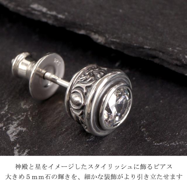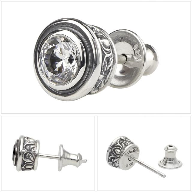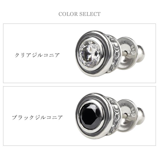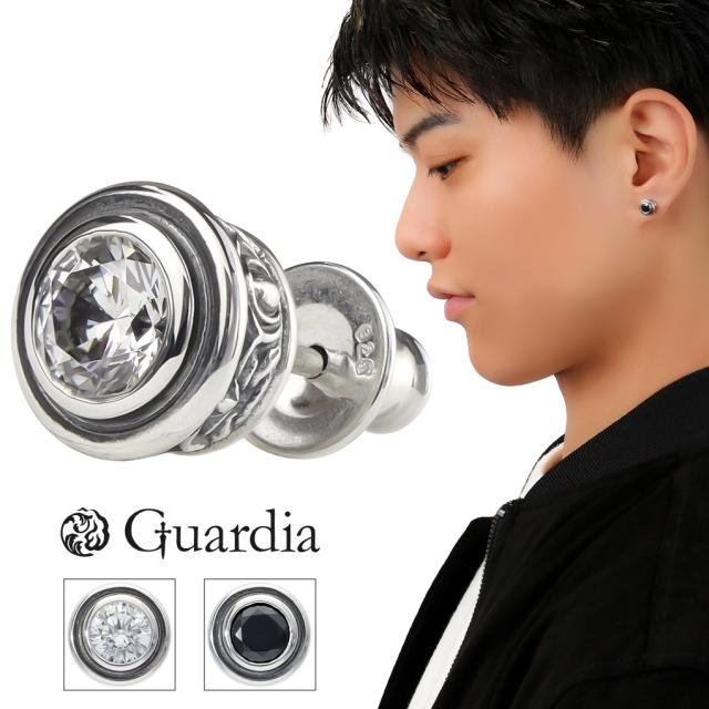 Guardia ガルディア Aster アステール シルバー ピアス 1P 片耳用 メンズピアス ジルコニア クリア 黒 ブラック 一粒ピアス 唐草 アラベスク 模様