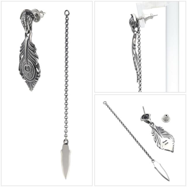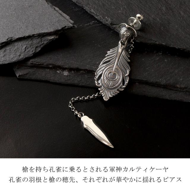 Guardia ガルディア Karttikeya カルティケーヤ シルバー ピアス 1P 片耳用 孔雀 クジャク 羽根 フェザー 鳥 槍 刃 穂先 チェーン 揺れる ドロップ