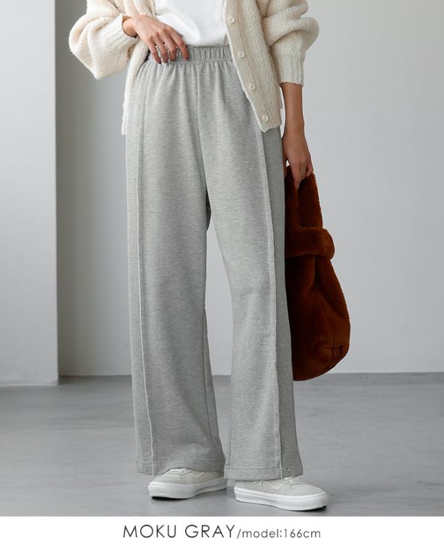 裾スナップスウェットパンツ ジャージ シンプル ゆったり 着回し カジュアル【メール便不可】