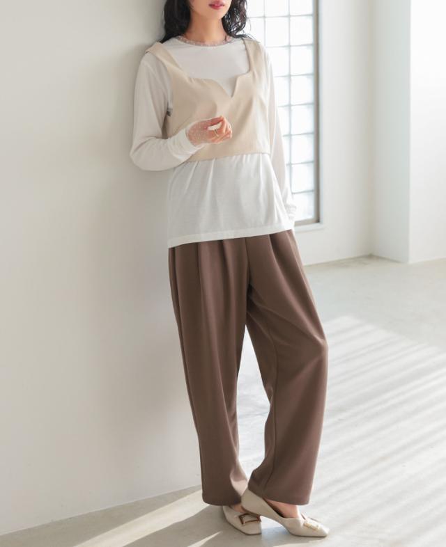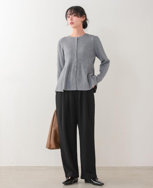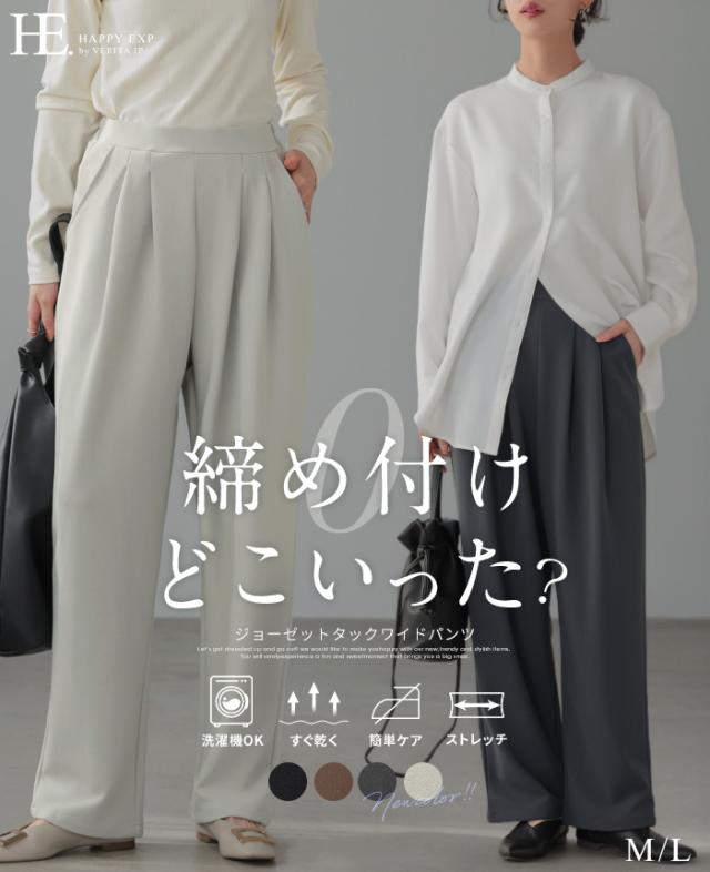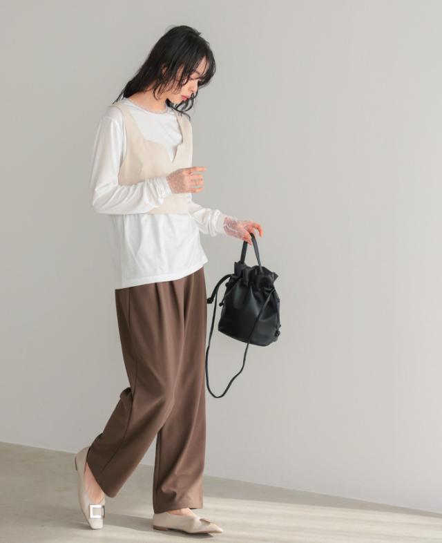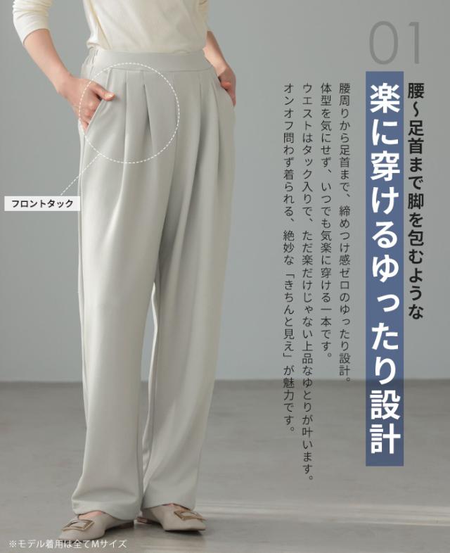 ■Attention ※ご覧になるモニターや環境により実際の商品と色味が異なる場合がございます。予めご了承ください。 ※実寸サイズは平置きメジャー採寸のため若干の誤差が生じる場合がございます。 ※お取り扱い・お洗濯につきましては、付属の商品タグをご使用前に必ずご確認下さい。 ※濃色の商品は色落ち・移染する可能性がございますので、お取り扱いにはご注意下さい。 ※繊維製品のため、同じ商品であっても生産時期やカラーによって伸縮率・生地感・色味が多少異なる場合がございます。特にニット製品に関してはプレス・洗い加工等で5cm前後の誤差が生じる場合がございます。 これらは品質上問題はございません。予めご了承下さい。 ■Staff comment AI/身長:154cm(普段のサイズ:M-L) 体型:骨格ストレート 全体的に厚みのある、産後体型。 トップスはMサイズを選ぶ。 ウエストと腰回りが大きく、ボトムはLサイズを選ぶこともあります。 【総丈】M:5cm折ってフルレングス丈。L:6cm折ってフルレングス丈。 【ウエスト】M:丁度良い。L:程良くゆったり。 【ヒップ】M:丁度良い。L:程良くゆったり。 【一言コメント】 私の身長では少し丈が長いですが、ヒールやソールが高いシューズを穿いてスタイルアップしたいです。 AYA/身長:158cm(普段のサイズ:M) 体型:骨格ウェーブ 上半身筋肉質の標準体型。肩幅は広くバストは平均。 ウエストは細くヒップが大きいので、 ヒップに合わせてボトムは選びます。 【総丈】M:床につく。L:6cm折ってフルレングス丈。 【ウエスト】M:かなりゆったり。L:拳1個分のゆとりあり。 【ヒップ】M:ゆったり。L:かなりゆったり。 【一言コメント】 2タック入っているのでかなりゆったりしていて、落ち感があるのでスッキリ見えます。 RISA/身長:165cm(普段のサイズ:L-LL) 体型:骨格ナチュラル 体に厚みがあるやや痩せ型。 バスト・ウエスト・ヒップは標準ですが、 肩幅が広くて腕が長め、ふくらはぎは筋肉質。 身長が高いため普段Lサイズを選びます。 【総丈】M:くるぶし下3cm。L:くるぶし下4cm。 【ウエスト】M:少しきつい。L:丁度良い。 【ヒップ】M:丁度良い。L:程良くゆったり。 【一言コメント】 私の身長でも長めの丈感ですが、ゆったり穿きたいのでLを選びます。 |