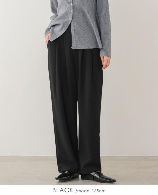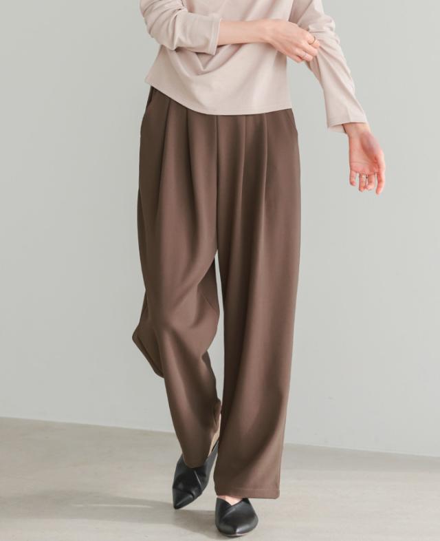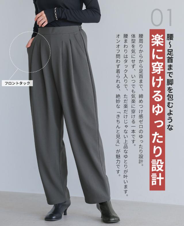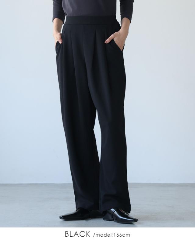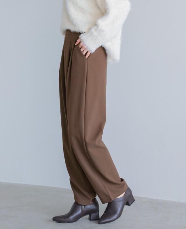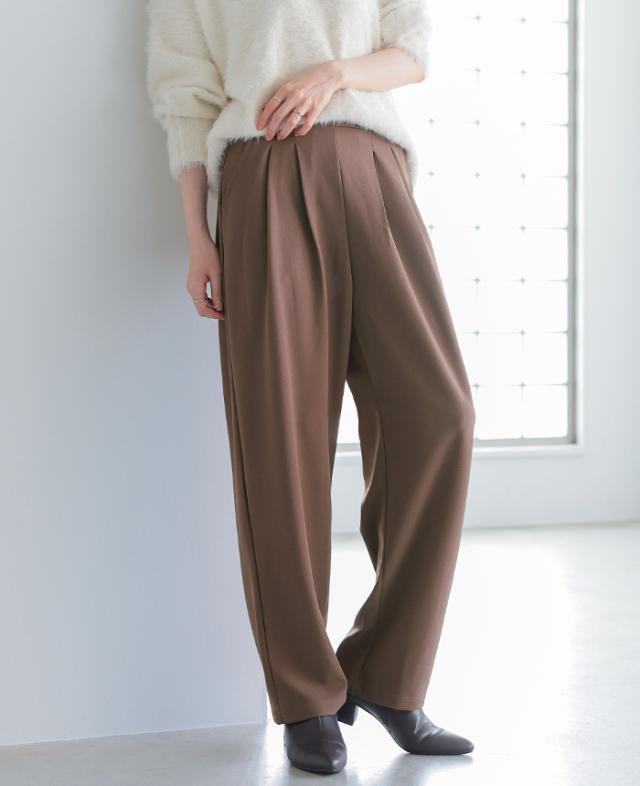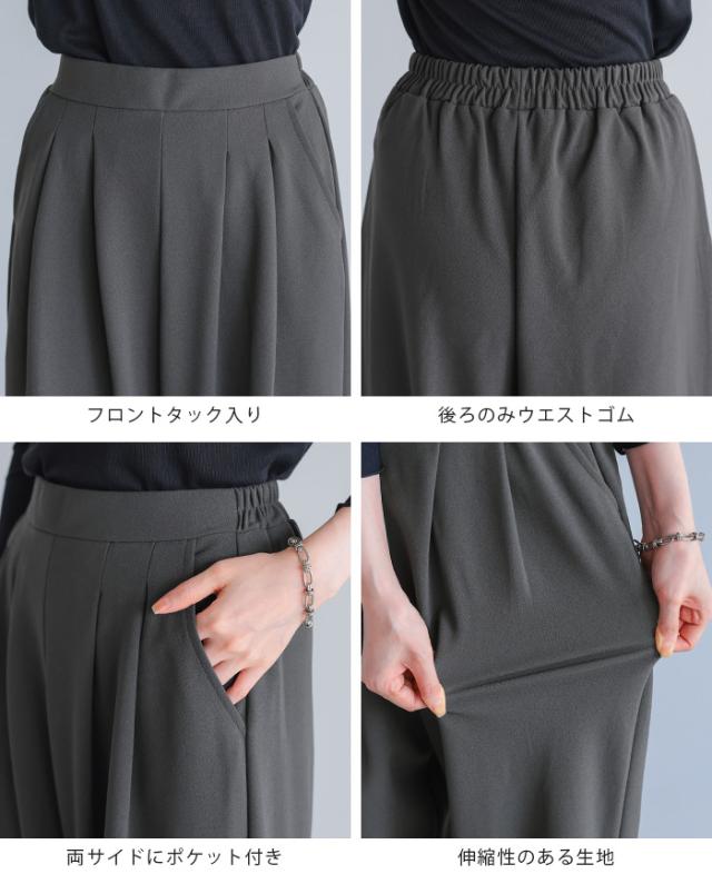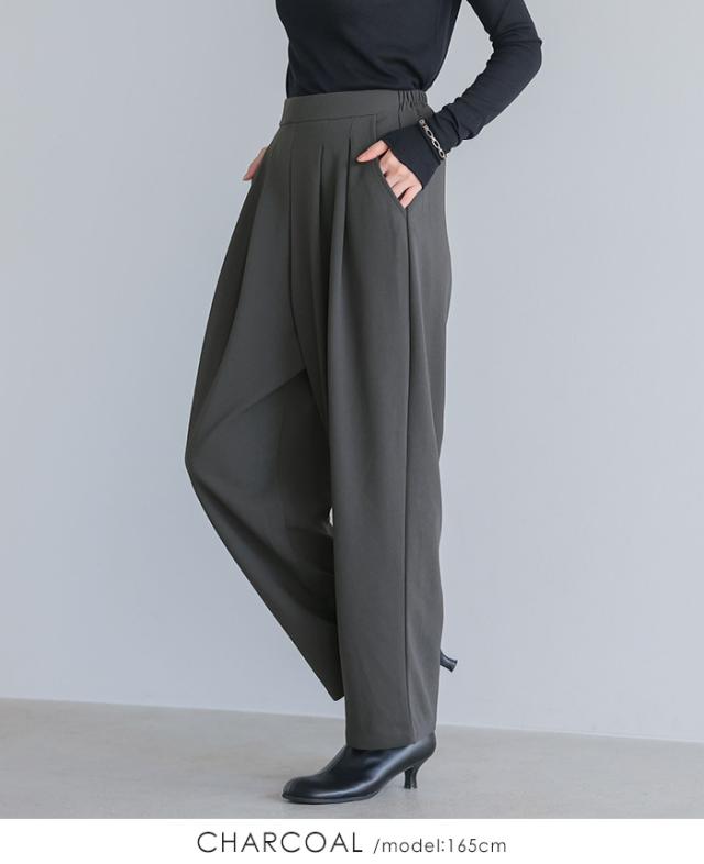 カットジョーゼットタックパンツ カーブパンツ テーパード ストレッチ レディース ボトムス タック ウエストゴム 秋新作 【メール便1点まで】[M便 1/1]