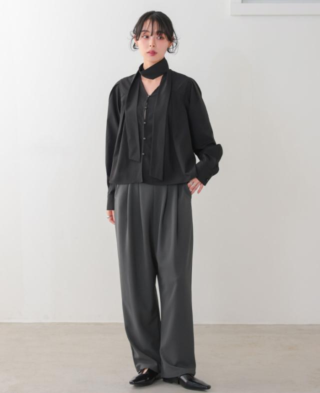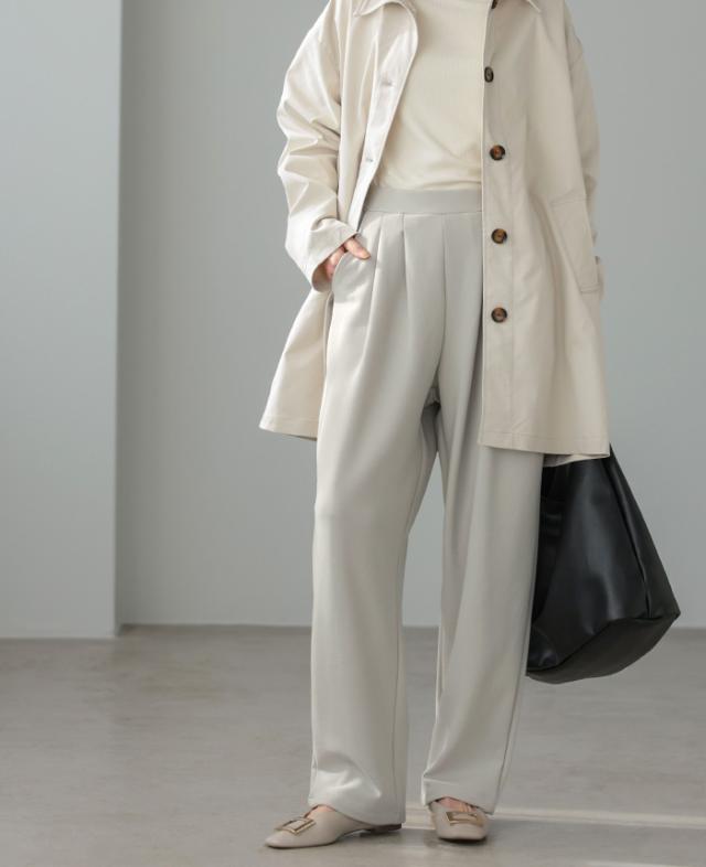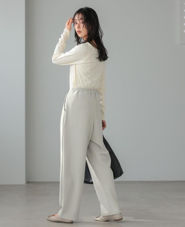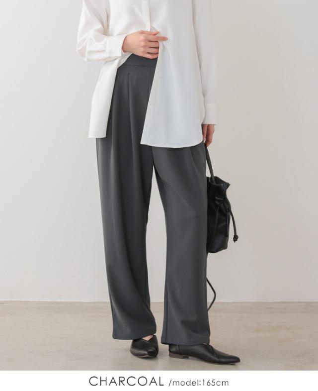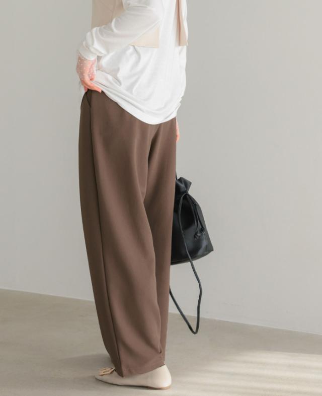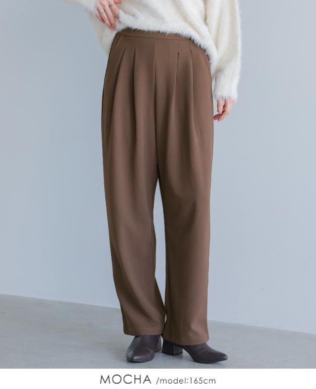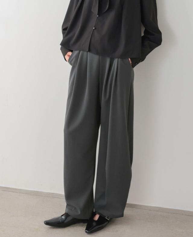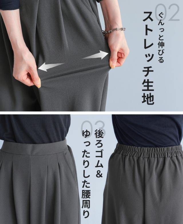 カットジョーゼットタックパンツ カーブパンツ テーパード ストレッチ レディース ボトムス タック ウエストゴム 秋新作 【メール便1点まで】[M便 1/1]