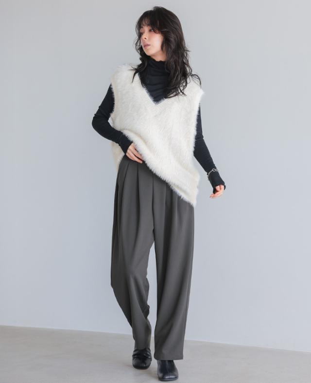![]() ![]() ![]() ![]() ![]() ![]() ![]() ![]() ![]() ![]() ![]() ![]() ![]() ![]() ![]() ![]() ![]() ![]() ![]() ![]() ![]() ![]() ![]() ![]() ![]() ![]() ![]() ![]() ![]() ■Comment ウエストにたっぷりとタックを入れた、ラフに穿けるパンツ。 ゆったりとしたシルエットは、裾が細くなっているのでスッキリ見えます。 ウエストは前フラットで、インしても決まるデザイン。 上品なジョーゼットは伸縮性もあり、穿き心地抜群。 場所を選ばず着回せる、万能アイテムです。 ■Size(cm) 【M】:総丈99 ウエスト64-94 ヒップ102 股上34/44 股下68 わたり幅37 裾回り44 【L】:総丈100 ウエスト68-98 ヒップ110 股上35/45 股下68 わたり幅39 裾回り46 ■Fabric ポリエステル98% ポリウレタン2% 生地感:シボ感と落ち感のある、カットジョーゼット生地 裏地:なし 伸縮性:あり 透け感:若干あり 生地の厚さ:普通 ■Weight 【M】:約365g 【L】:約386g ■Color ブラック(標準的な黒) モカ(グレーがかった茶) チャコール(青みの強い、暗めのグレー) ■Country of origin 中国 ■洗濯表示 ![]() ■Attention ※ご覧になるモニターや環境により実際の商品と色味が異なる場合がございます。予めご了承ください。 ※実寸サイズは平置きメジャー採寸のため若干の誤差が生じる場合がございます。 ※お取り扱い・お洗濯につきましては、付属の商品タグをご使用前に必ずご確認下さい。 ※濃色の商品は色落ち・移染する可能性がございますので、お取り扱いにはご注意下さい。 ※繊維製品のため、同じ商品であっても生産時期やカラーによって伸縮率・生地感・色味が多少異なる場合がございます。特にニット製品に関してはプレス・洗い加工等で5cm前後の誤差が生じる場合がございます。 これらは品質上問題はございません。予めご了承下さい。 ■Staff comment AI/身長:154cm(普段のサイズ:M-L) 体型:骨格ストレート 全体的に厚みのある、産後体型。 トップスはMサイズを選ぶ。 ウエストと腰回りが大きく、ボトムはLサイズを選ぶこともあります。 【総丈】M:5cm折ってフルレングス丈。L:6cm折ってフルレングス丈。 【ウエスト】M:丁度良い。L:程良くゆったり。 【ヒップ】M:丁度良い。L:程良くゆったり。 【一言コメント】 私の身長では少し丈が長いですが、ヒールやソールが高いシューズを穿いてスタイルアップしたいです。 AYA/身長:158cm(普段のサイズ:M) 体型:骨格ウェーブ 上半身筋肉質の標準体型。肩幅は広くバストは平均。 ウエストは細くヒップが大きいので、 ヒップに合わせてボトムは選びます。 【総丈】M:床につく。L:6cm折ってフルレングス丈。 【ウエスト】M:かなりゆったり。L:拳1個分のゆとりあり。 【ヒップ】M:ゆったり。L:かなりゆったり。 【一言コメント】 2タック入っているのでかなりゆったりしていて、落ち感があるのでスッキリ見えます。 RISA/身長:165cm(普段のサイズ:L-LL) 体型:骨格ナチュラル 体に厚みがあるやや痩せ型。 バスト・ウエスト・ヒップは標準ですが、 肩幅が広くて腕が長め、ふくらはぎは筋肉質。 身長が高いため普段Lサイズを選びます。 【総丈】M:くるぶし下3cm。L:くるぶし下4cm。 【ウエスト】M:少しきつい。L:丁度良い。 【ヒップ】M:丁度良い。L:程良くゆったり。 【一言コメント】 私の身長でも長めの丈感ですが、ゆったり穿きたいのでLを選びます。 |