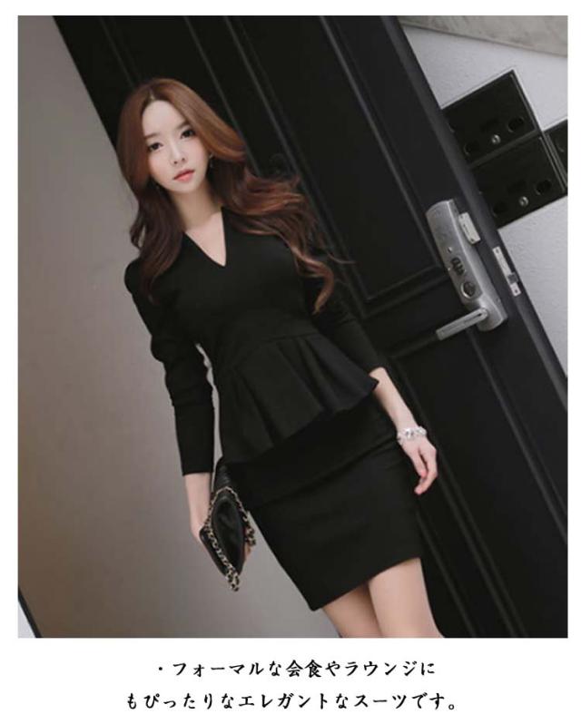 キャバスーツ レディーススーツ セットアップ ママスーツ 上下セット スカートスーツ 長袖 Vネック ペプラムヘムトップス スリム 細身 タイトスカート 大人 可愛い 上品 ナイトスーツ 卒園式 入園式 卒業式 入学式