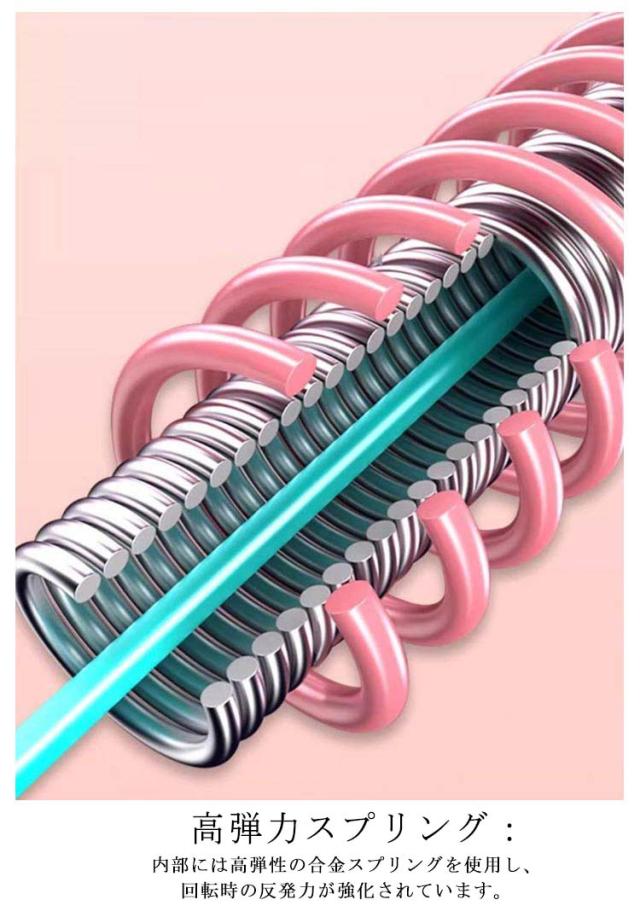 | 低騒音設計:静音スプリング構造により、室内使用でも音が気になりにくい設計です。 しっかり加重:約1.3kgの加重タイプで、通常のフラフープよりも効率よくカロリー消費と体幹トレーニングができます。 高弾力スプリング:内部には高弾性の合金スプリングを使用し、回転時の反発力が強化されています。 環境に優しい素材:外装は耐久性と安全性に優れたPVCプラスチックを使用しています。 持ち運び収納便利:分解式なので、省スペースで保管可能です。 | |