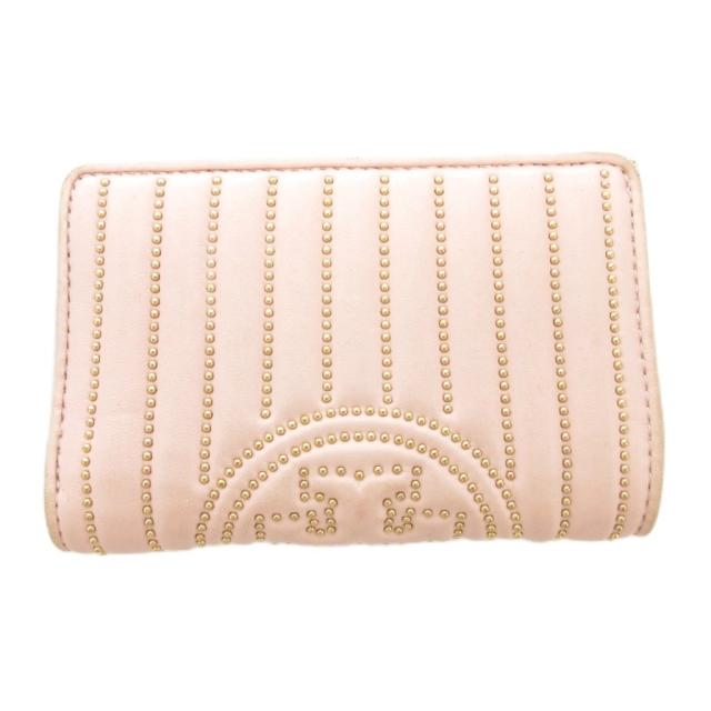 【中古】トリーバーチ TORY BURCH 二つ折り財布 ウォレット ビーズ ロゴ ピンク /AE ■GY11 レディース