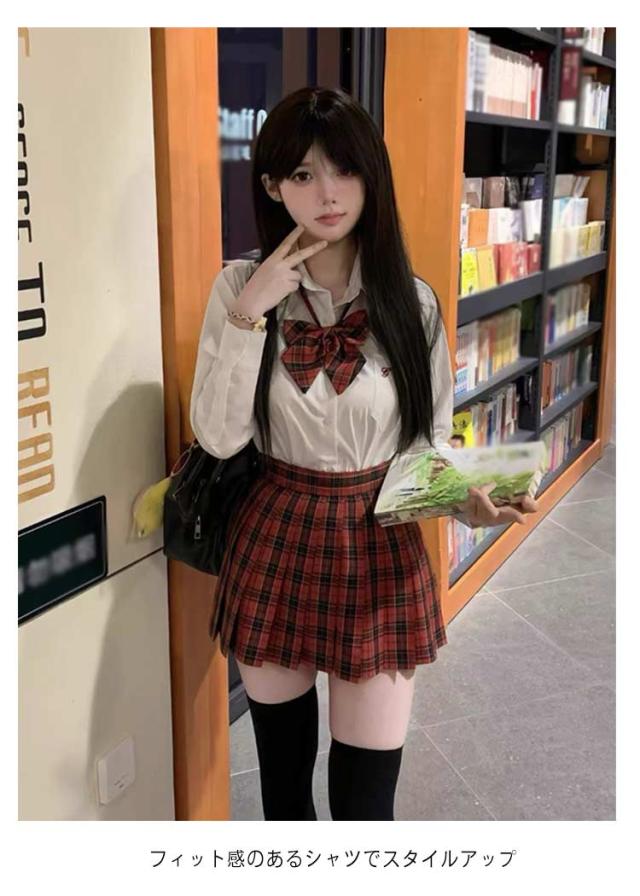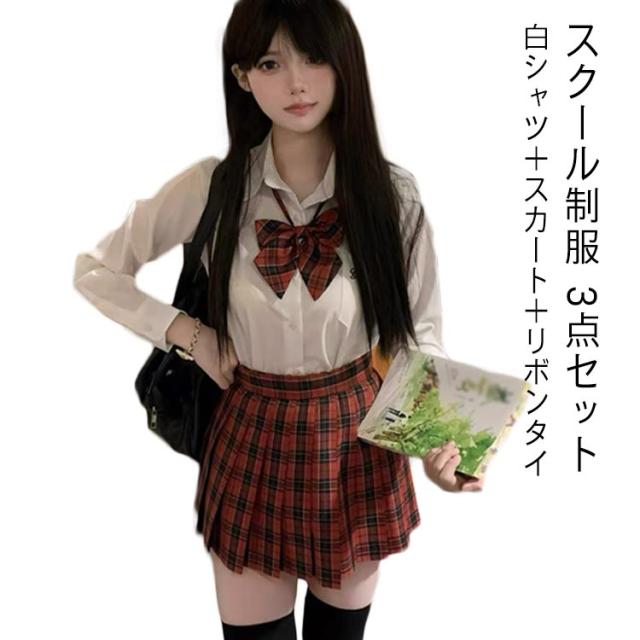 | スクール制服 3点セット 白シャツ+スカート+リボンタイ な白シャツにチェック柄のプリーツスカートを合わせたコーデ フィット感のあるシャツでスタイルアップ リボンタイ付きで華やかさをプラス 学生風コーデ、通学、舞台衣装、イベントに最適 | |