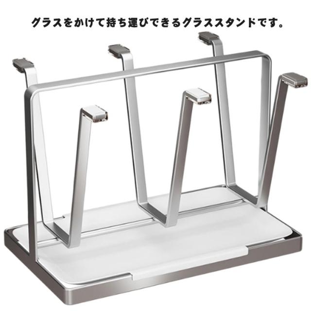 | グラスをかけて持ち運びできるグラススタンドです。 錆びにくく耐久性に優れたステンレス製なので、お手入れも簡単。 シリコンカバーが6個付き、コップラックの先端に設置してガラスコップが滑りにくく割れにくいです。 トレイが付き、コップを整理しながら水切り可能、台面の清潔感を保ちます。 シンプルでおしゃれなデザインはインテリアになじみ、日常使いはもちろん来客時にも活躍します。 | |