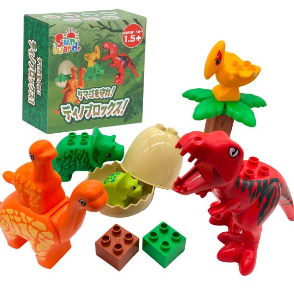 ブロック おもちゃ デュプロと同じサイズの恐竜セット Sunwards公式 ブロック 6体の恐竜と卵 ティラノサウルス おもちゃ デュプロ アンパンマンブロック