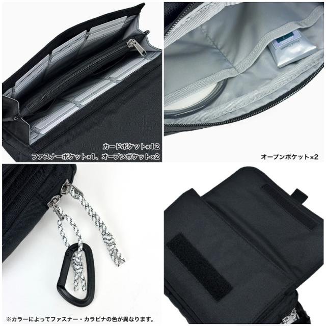 | サイズ | サイズ:H15×W24×D2cm 重さ:約220g 素材:600D OX(ポリエステル) (メインルーム内側)オープンポケット×2 (フロントポケット内側)オープンポケット×2、カードポケット×12、ファスナーポケット×1 カラー:Black、BritishTan、CrushedBlue、ShalePurPle |