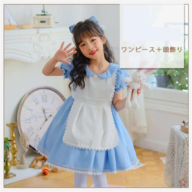 商品名:メイド服 女の子 子供ハロウィン ハロウィン衣装 キッズハロウィン コスプレ仮装 ハロウィン衣装 コスチューム ワンピース エプロン 半袖 コスプレ衣装 子供ワンピース 可愛い 変装 ハロウィンコスプレ パーティー 演出服 団体服 110 120 130 140 150