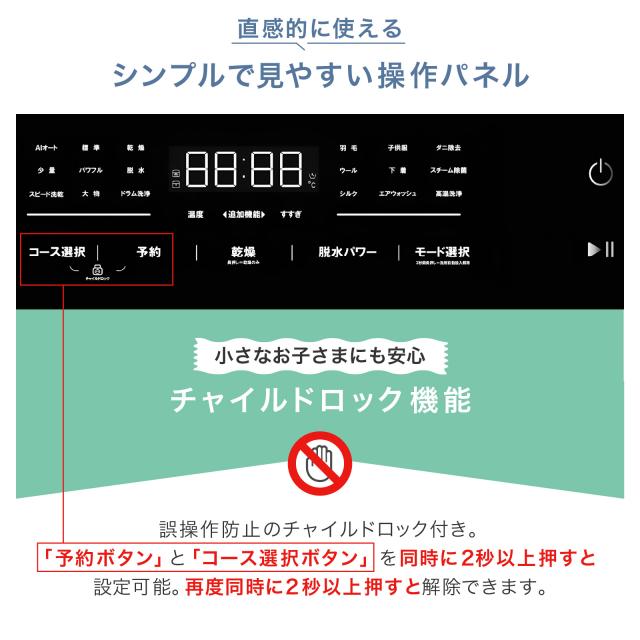 洗剤自動投入 水温調節 高温洗浄 予約設定 ホワイト