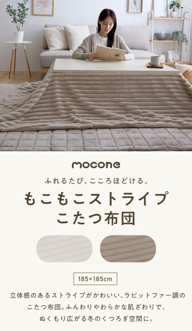 mocone もこもこストライプこたつ布団 正方形 185×185cm こたつ布団 モコモコ ストライプ ふわふわ とろとろ ラビットファー 炬燵 コタツ 冬用 節電 あったか 暖かい かわいい 韓国 おしゃれ【送料無料】