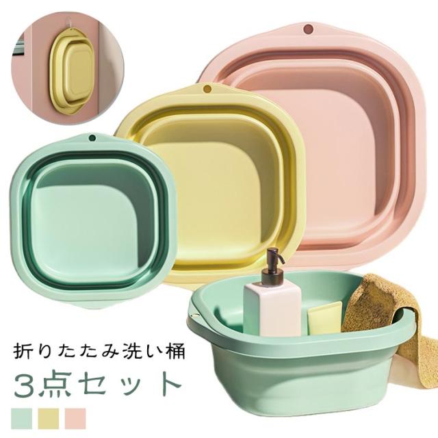 洗面器 【3点セット】折りたたみ式洗い桶 洗い桶 中型 猫 洗濯 多機能 キッチン 食器洗い桶 洗濯 掃除 足浴 風呂 洗いかご 収納便利 コンパクト収納 【3点セット】折りたたみ式洗い桶 犬 お風呂用 コンパクト ベビーバス 折りたたみ おしゃれ 折り畳み バケツ シリコン