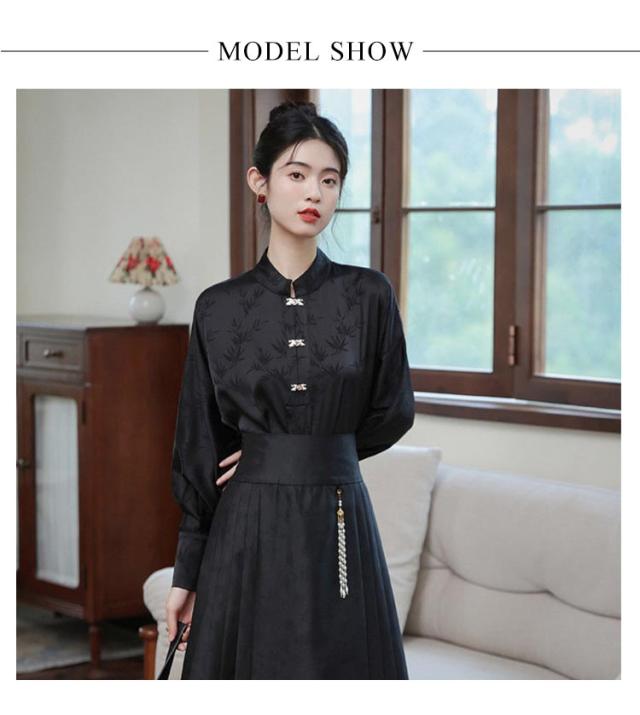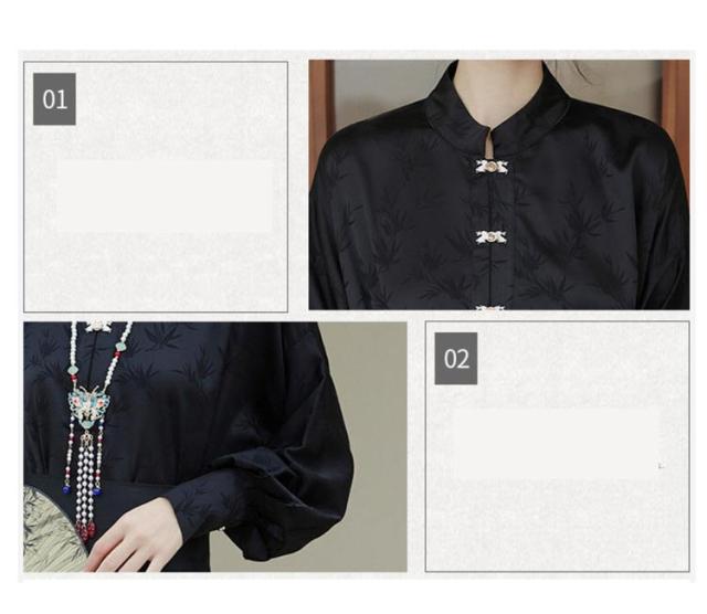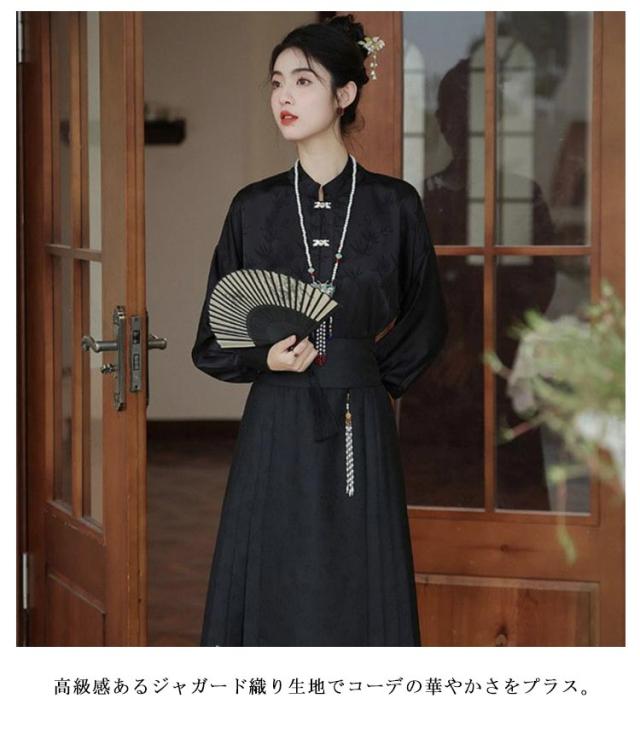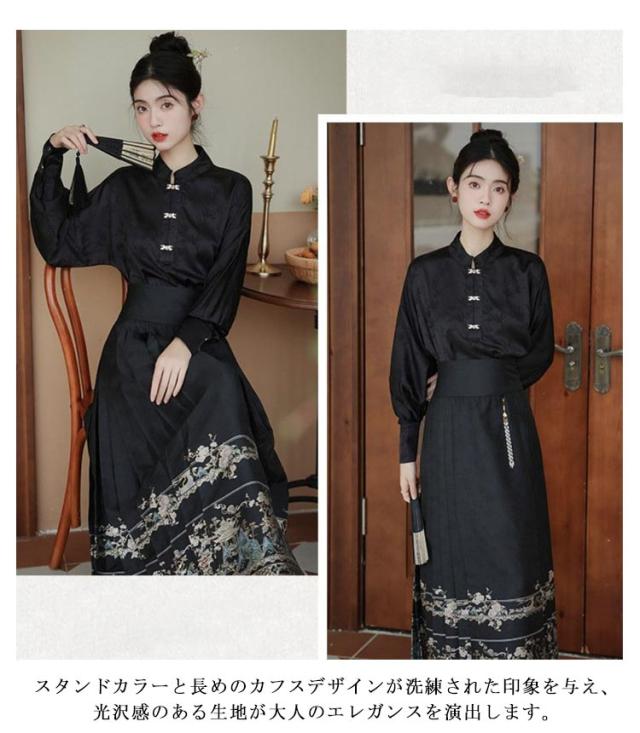 | 上品でクラシカルな雰囲気を纏う チャイナ風ジャガードブラウス。 スタンドカラーと長めのカフスデザインが洗練された印象を与え、光沢感のある生地が大人のエレガンスを演出します。 高級感あるジャガード織り生地でコーデの華やかさをプラス。 フォーマルからカジュアルまで幅広く使えるデザイン、黒のシックなカラーで大人っぽく上品に着こなせる。 結婚式や二次会、フォーマルな場での装い、オフィスカジュアルや通勤服として、旅行や特別な日のコーディネートにもオススメのチャイナ風ブラウス。 | |