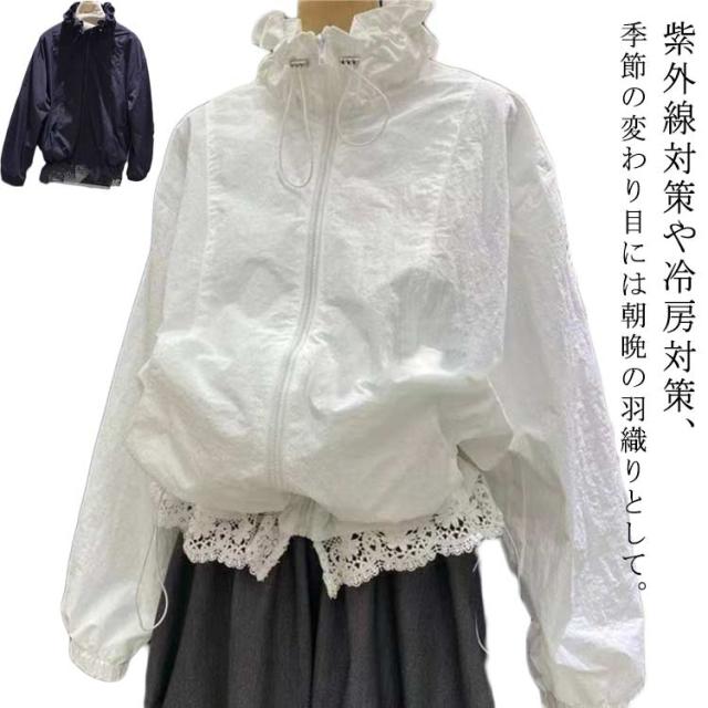 レディース 春 フードなし ジップアップ 夏 長袖 レース ジャケット サマージャケット 春 夏用 冷房対策 無地 軽量 uvカット ジャケット アウター 紫外線対策 シンプル ゆったり きれいめ おしゃれ 薄手 夏 アウトドア 普段着